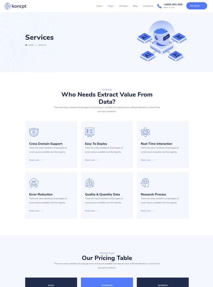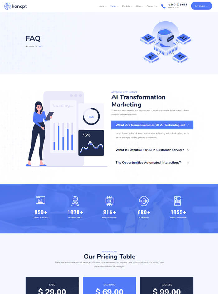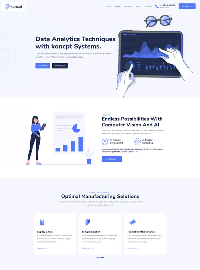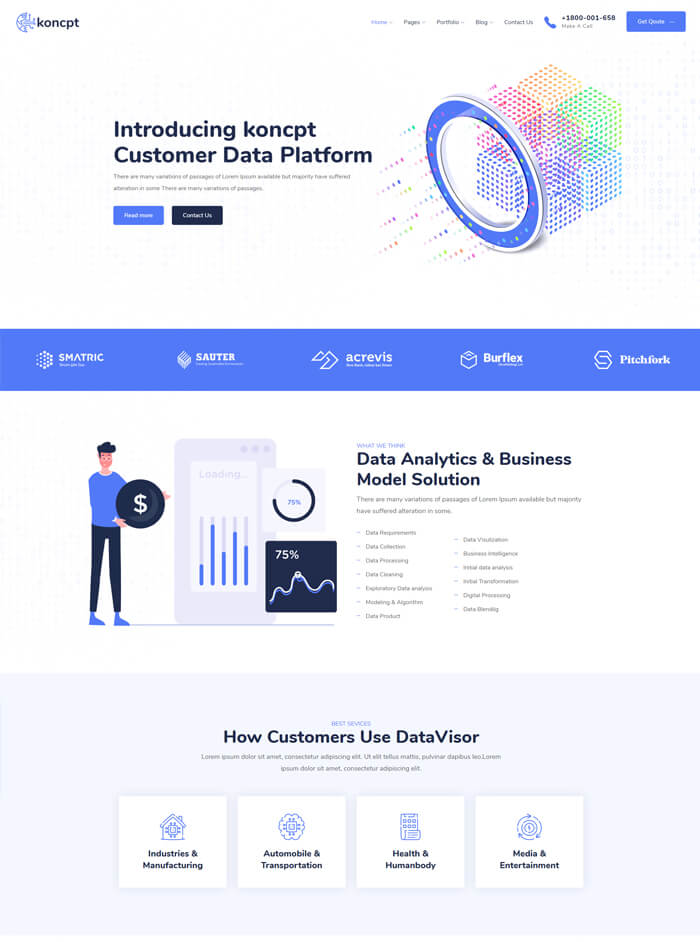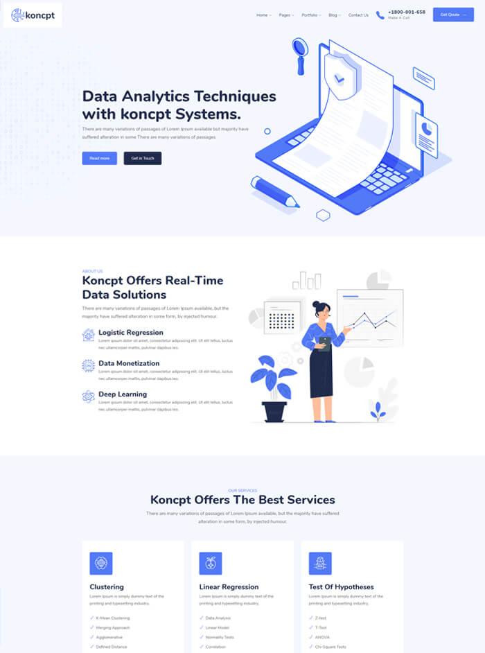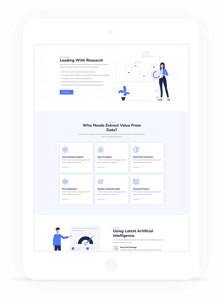 Unique Style, Parallex Homepage, Machine-learning, Financial Analytics, Predictive Analysis, Artificial Intelligence,data Visualization Service And Many More Homepage With Woocommerce And Number Of Inner Pages.