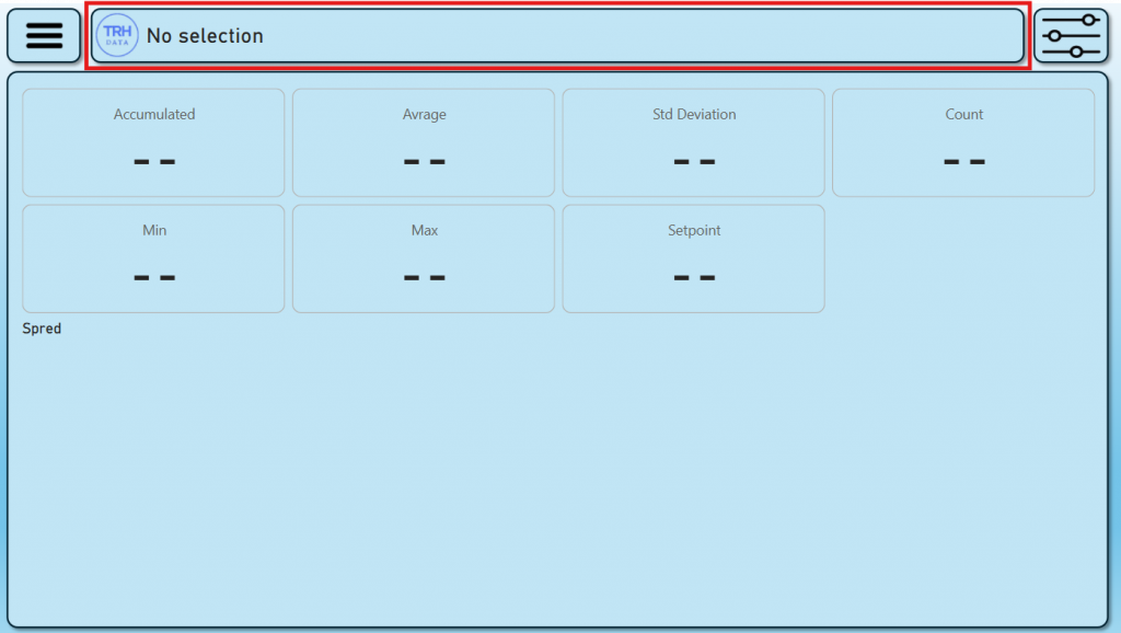 If there is not selected a specifik production the title will show “No selection” and there will be no data visible in the data area.