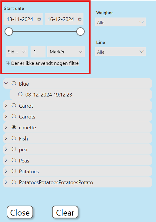 Select a recipe and a specifik production date and time.